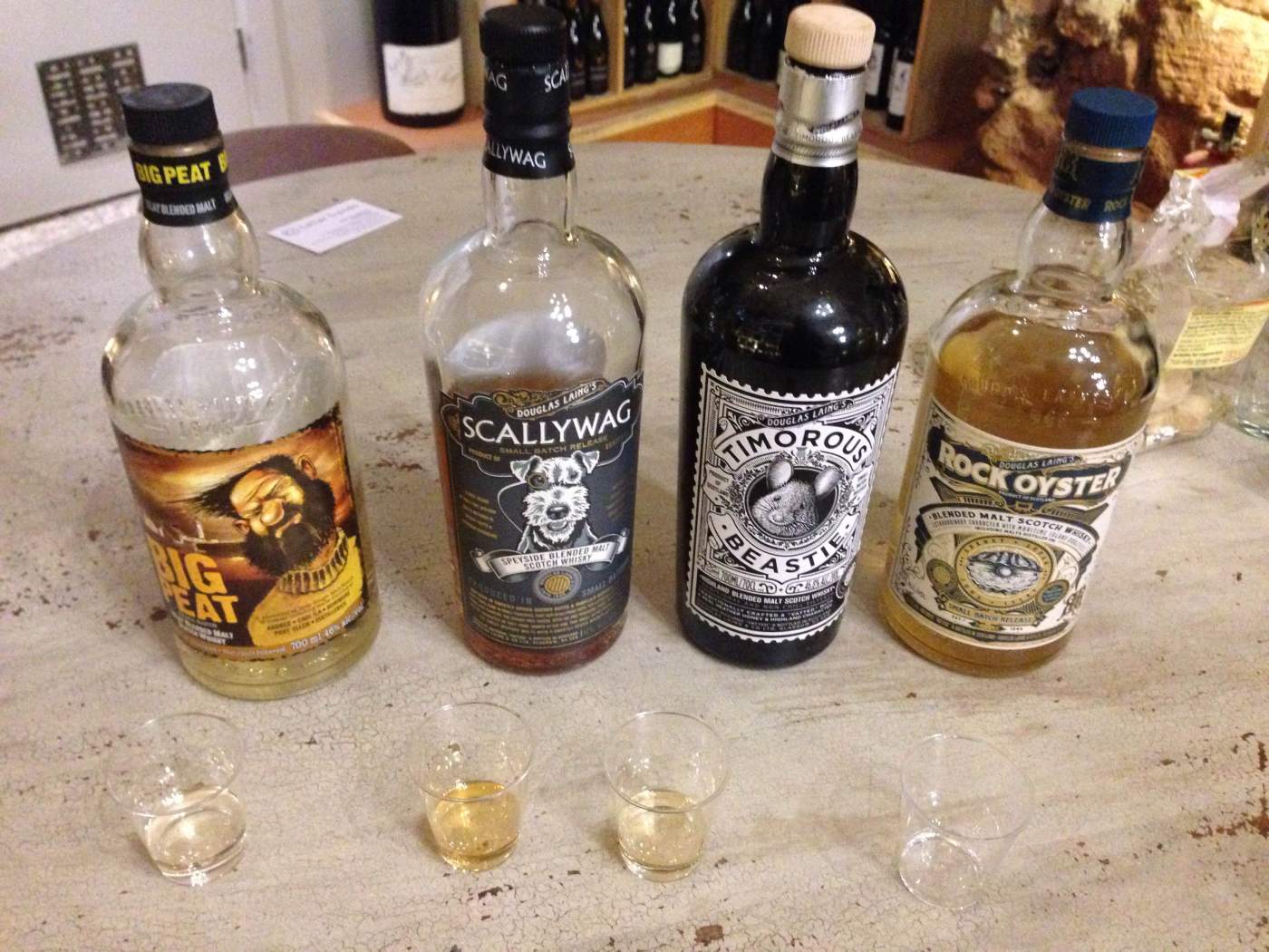 Before even cracking into the drams available, it was clear to see that the marketing and packaging of these whiskies were strong. Again, I was aware of Big Peat and the marketing behind it, but the other 3 in the range had a distinctive look about them, and almost looked as if they’d fit on a Victorian medicine cabinet. I was told that the design work is put together by Cara Laing, daughter of current owner Fred Laing Jr, and, personally, I think she has done a fantastic job (see also their Old Particular whisky’s branding).