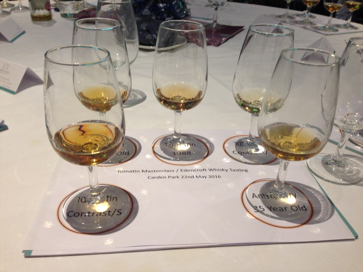 Up for grabs in the tasting were five offerings from Tomatin’s distillery, including a 36 year old that had been bottled only a couple of days before. Definitely headlining stuff!
