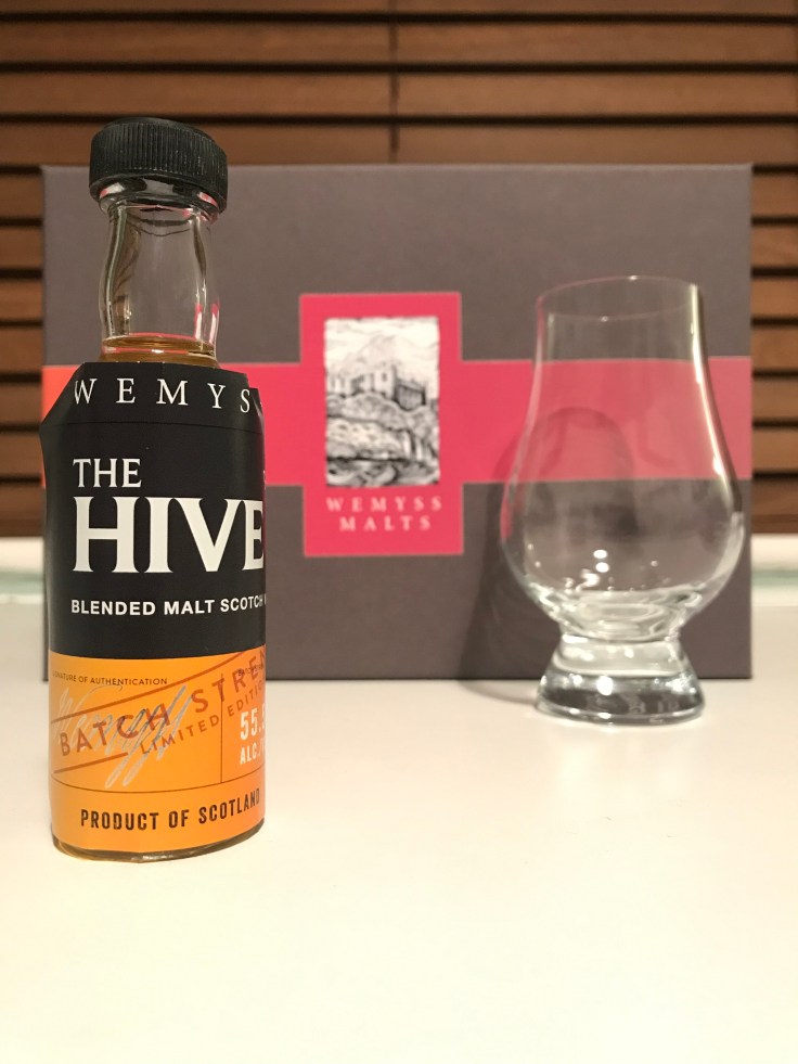 Since first releasing blended malt whiskies in 2005, the Wemyss Malts team have continued to develop a stable core range of products that best example some of scotch whisky’s key unique identifiers: sweet, spicy and smoky. These three characteristics are represented within the three unique expressions that comprise their core range: The Hive, Spice King and Peat Chimney. In 2017 the team released a limited edition batch strength bottling of these three core releases – knowingly entitled Batch No. 001. In 2019 we have now seen the second release of beefed up editions of the core range whiskies, and here we look at the sweet entry in the roster: The Hive – Batch Strength No. 002. The second release has upped the ABV by a further percentage point to the initial release, having been bottled at 55.5% ABV and can be bought for a limited time at an RRP of £45.95, whilst stocks of the 9000 bottles last.