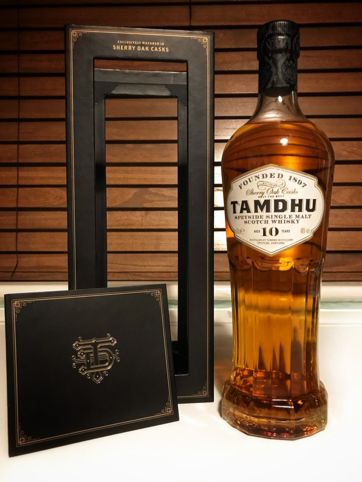 Tradition. It’s a strong word. It also has lots of implications. It can divide opinion too. “Why not move with the times?” vs “Why fix something that isn’t broken?” Campaigning for the stance of sticking with tradition is Tamdhu distillery. Tucked away in Knockando, Speyside, the distillery has been producing whisky since 1898 and has only ever aged its whisky in sherry casks. Despite this being an expensive way of doing things, the Tamdhu team have stood by their ‘Spain to Speyside‘ method since day one. In recent times, the 10 year old expression has been the distillery’s youngest age statement single malt, and, as is tradition, has been solely matured in Olorosso sherry barrels. Whilst the methods shall remain the same, Tamdhu are however “retiring” this release and are replacing it with an older entry release with its new 12 year old single malt [ed: seemingly contrary to what others distilleries appear to be doing by going younger or NAS – albeit at a £10-15 price hike from the 10yo to 12yo]. As with all Tamdhu releases, this whisky is available (while stocks last!) in a rather elegant bottle and packaging, which the distillery holds as testament to the quality of its product and is captured at 40% ABV.