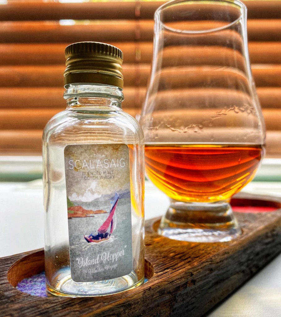 Within the whisky press, it has been refreshing to see the genuine, honest and transparent development of the whisky, with director Keith Bonnington taking the lead on the socials. I’ve also been quite enamoured by the story behind the stylish branding, which takes its inspiration from 1930s style travel posters and one particular postcard that Keith Bonnington received from his wife as good luck item when he left the Edrington group after 13 years of service. The team then reached out to the artist Peter McDermot of the Isle of Skye, who first created the design on that postcard, to create the designs for the Island Hopper and the upcoming Scalasaig whisky brand releases.