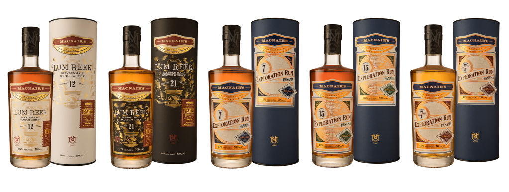 MacNair’s Boutique House of Spirits will comprise both their new-look Lum Reek Blended Malt Scotch Whisky, and a brand new small-batch rum line named Exploration Rum.